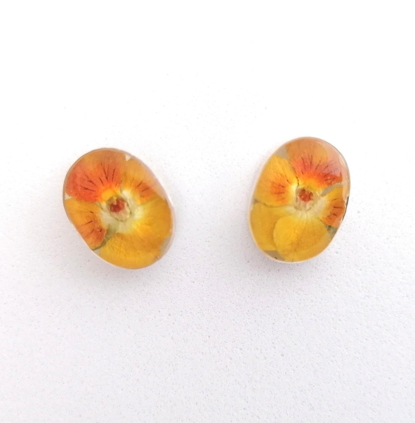 Pendientes de flores naturales (pensamiento) plata de ley 950 m/m
