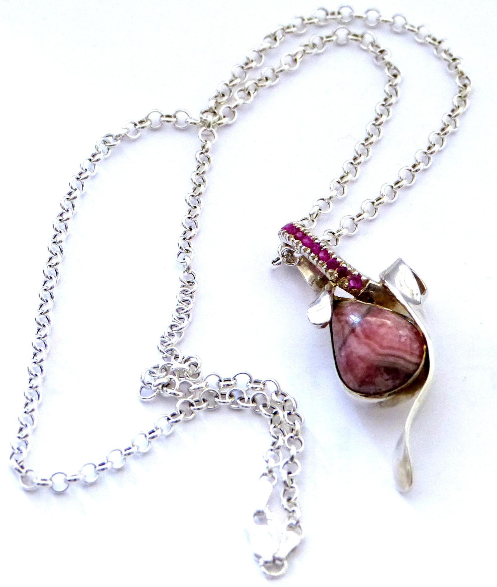 Colgante con piedra rhodocrosita y rubi engastados