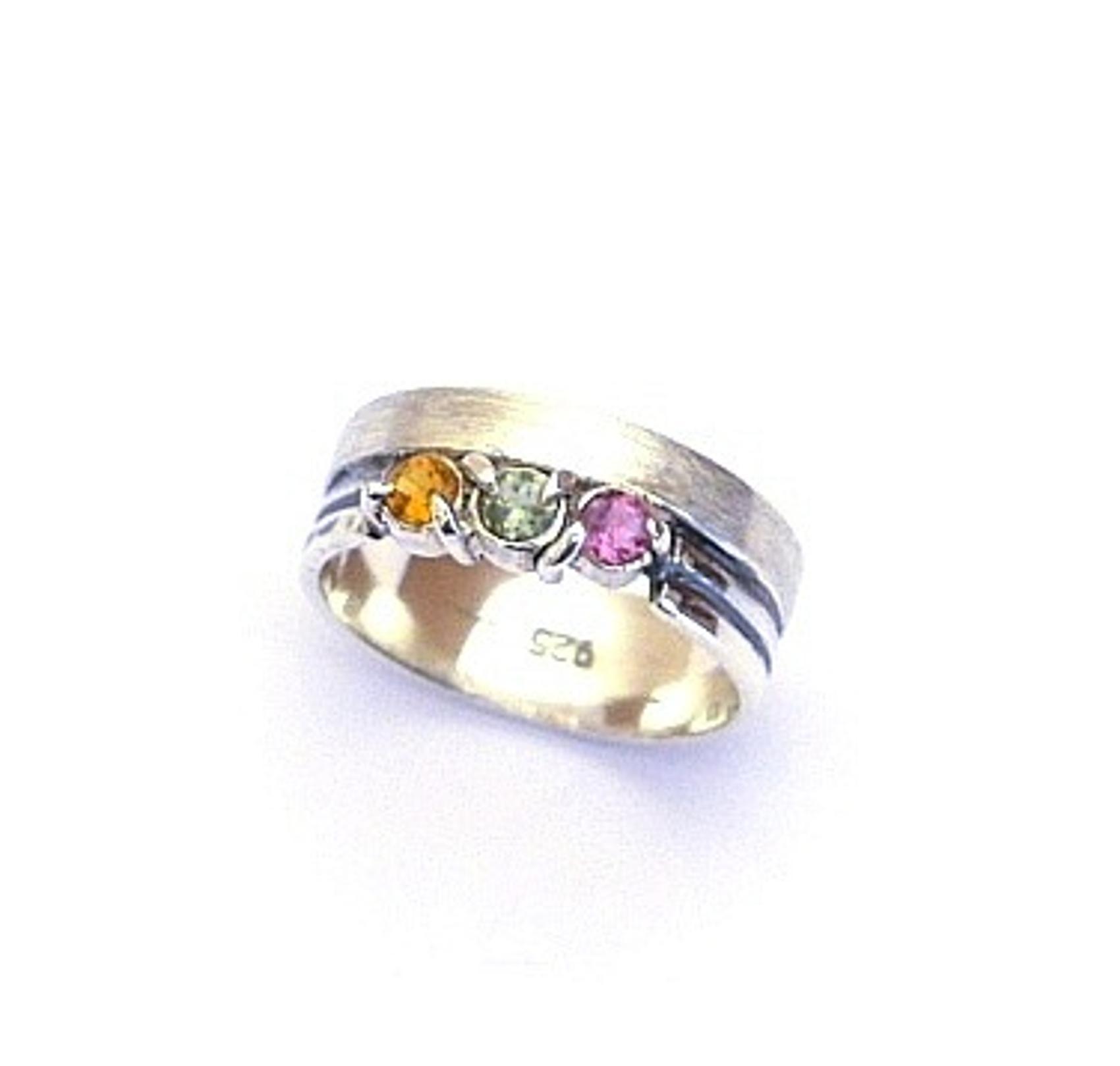 Anillo turmalinas de color y plata de ley con esmalte negro